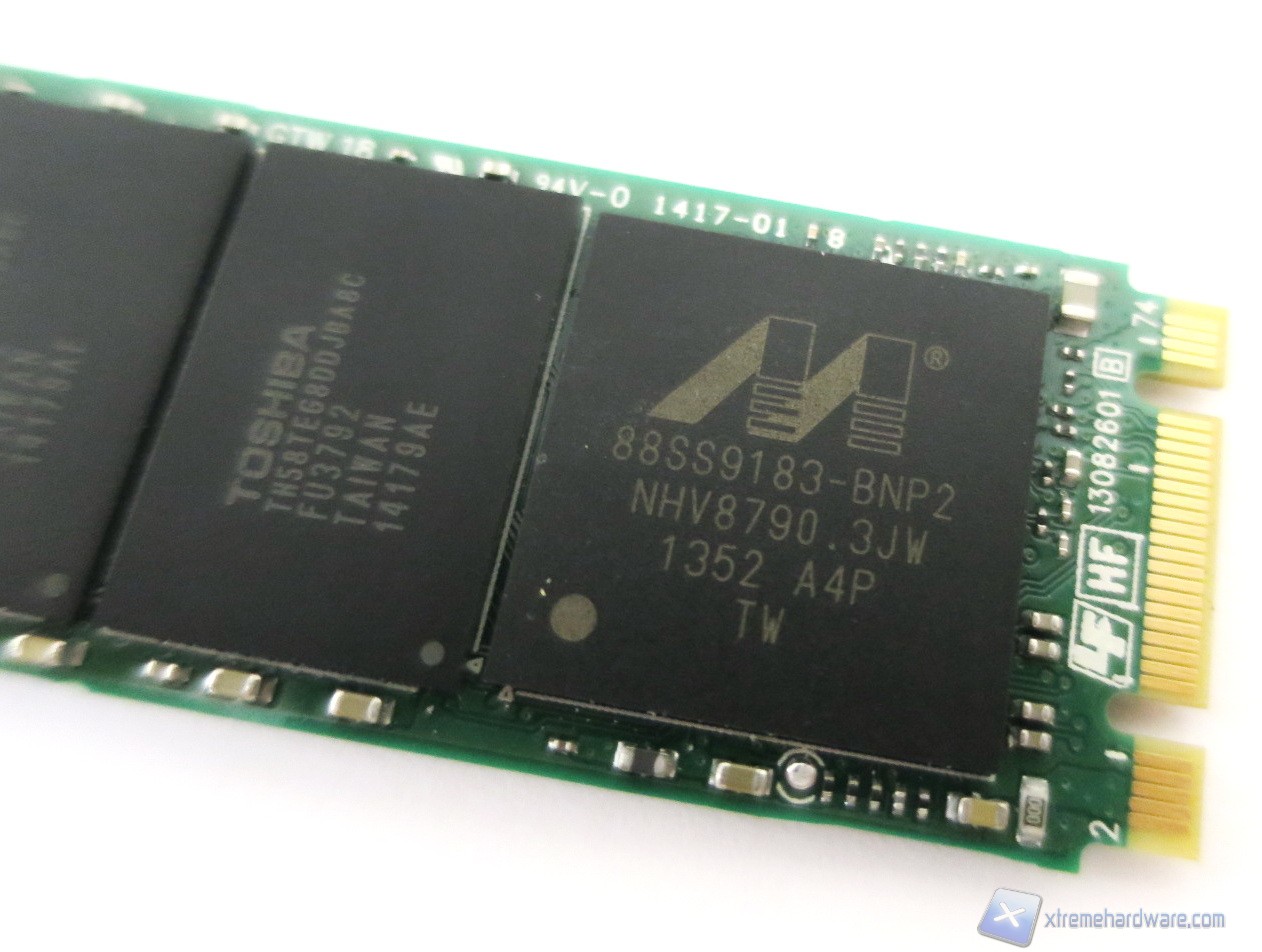 Il Marvell 88SS9183 è un controller di ultimissima generazione Dual Core realizzato su socket BGA che utilizza due strati fisici PCIe nativi, il che significa che supporta due linee PCIe di seconda generazione. Il controller supporta inoltre la codifica con chiave di criptazione AES a 256 bit rendendo il Plextor M6e un SSD utilizzabile anche in ambiente lavorativo.